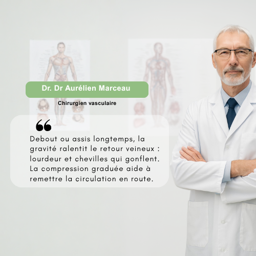 Chaque soir, tes jambes te semblent peser une tonne ? Ce n’est pas “la fatigue”… c’est ton sang qui stagne. Les chaussettes VIVALYX CIRCUL’AIR™ stimulent ta circulation naturellement grâce à une compression graduée intelligente : plus ferme à la cheville, plus douce au mollet.